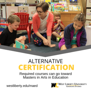 **Only the M.A.Ed. Reading Specialist leads to initial teacher certification/licensure in West Virginia as a certified reading specialist, as long as candidates pass the Praxis 5301 and all program requirements. No other M.A.Ed. concentration leads to initial teacher certification/licensure in WV.