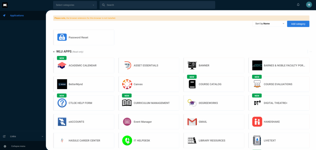 Once past enrolling in MFA, you’ll be greeted by a whole host of icons and links to follow through. Each of these links lead to a service that is a part of West Liberty.