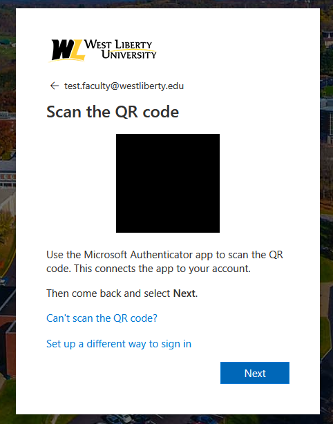 First you’ll need to install the Microsoft Authenticator app on your Mobile device. Once doing so you’ll want to go through the steps to scan the QR code to add your WLU Microsoft account to the authenticator.