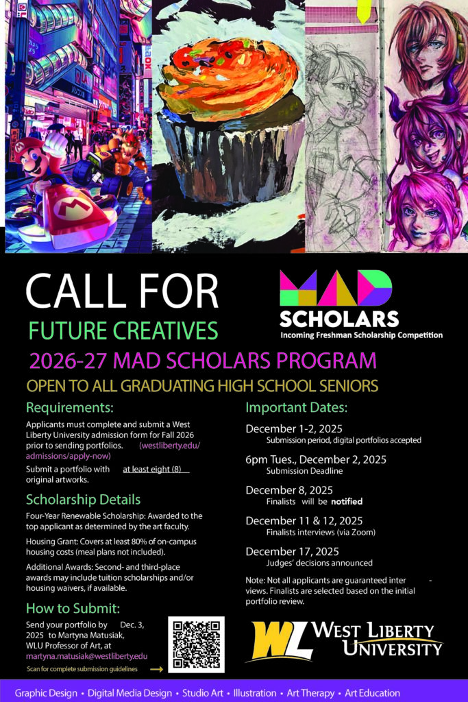 The Department of Media and Visual Arts at West Liberty University is excited to announce the MAD Scholars Program — a competitive four-year scholarship opportunity for graduating high school seniors planning to pursue a Visual Communication degree in: