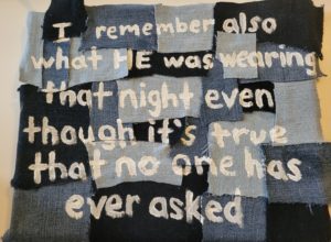 Her project “What They Were Wearing” is inspired by the national movement of art exhibitions that display the clothing survivors were wearing at the time of the assault. This national art therapy movement was spurred by the poem written by Dr. Mary Simmerling, entitled “What I Was Wearing.”