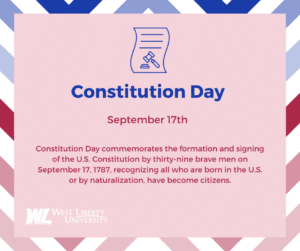 Join us when Constitution Day will be observed on campus on Wednesday, September 17th! Stop by the Union for some tabling information & other great educational opportunities with the Social Work Club & Poli Sci Department!